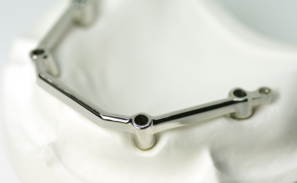 無歯顎の症例など、義歯の安定性を高めたい場合に適応したいアタッチメントです。埋め入れたインプラント体をバーにて連結し、入れ歯側にクリップを装着する事により機能します。