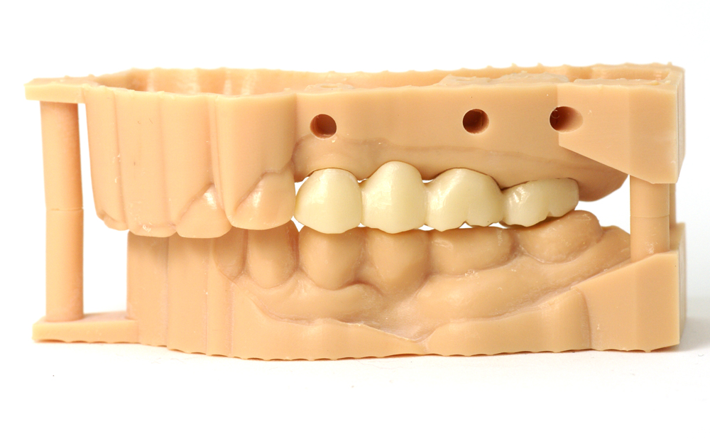 3Dプリンター導入により、前述の口腔内スキャンデータをシステム上でワックスアップし、歯列模型を3Dプリンティングするなど、技工部製作の流れをデジタル処理することが可能となります。これらの作業はデジタルの特徴が存分に反映され、手技による不確定要素を排除することで高精度の嵌合を実現することができます。