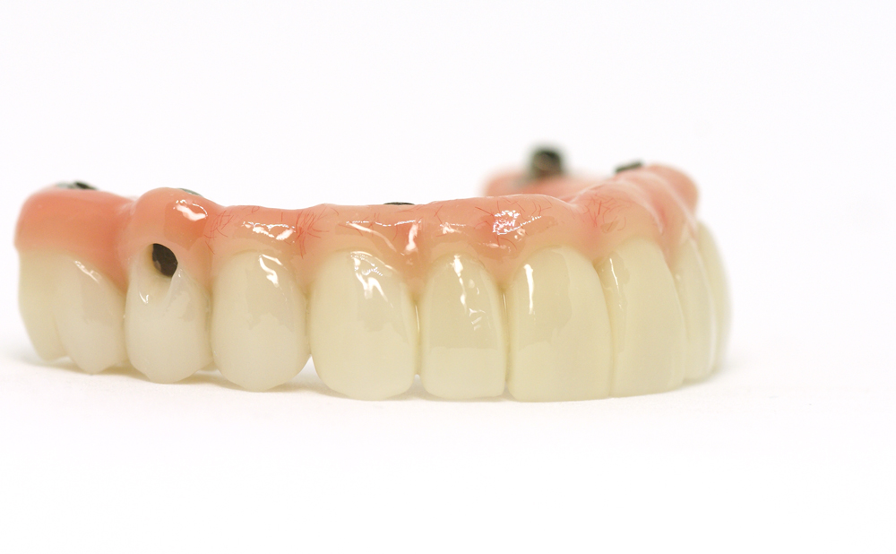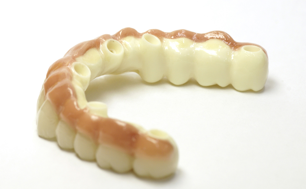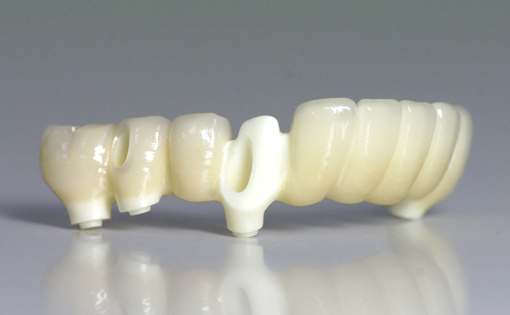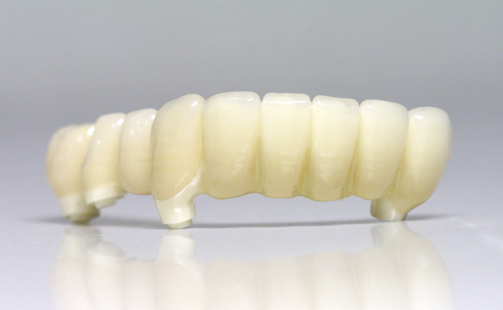 ノーベルバイオケア社のプロセラシステムによって作製される、スクリュー固定タイプのインプラントブリッジです。軟組織が退縮したケースでも、優れた審美性を発揮します。(最大14ユニット)